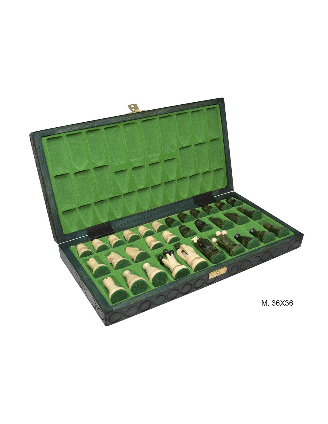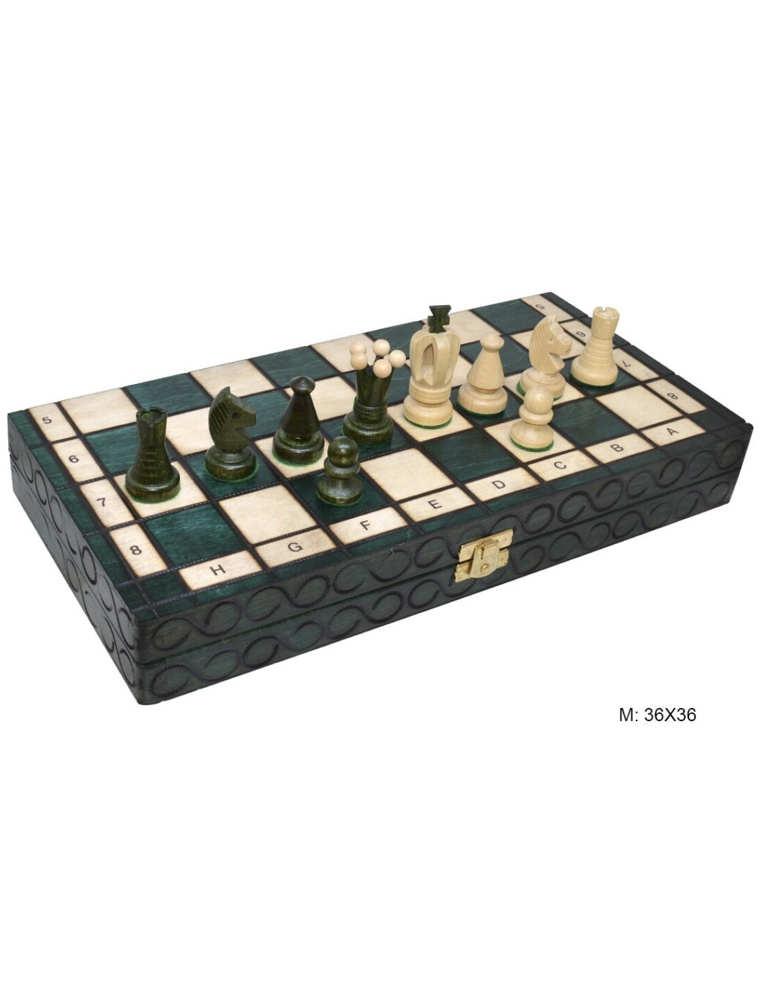 Ajedrez de madera plegable con unas piezas muy originales. En 4 colores. Elige el tuyo !!!