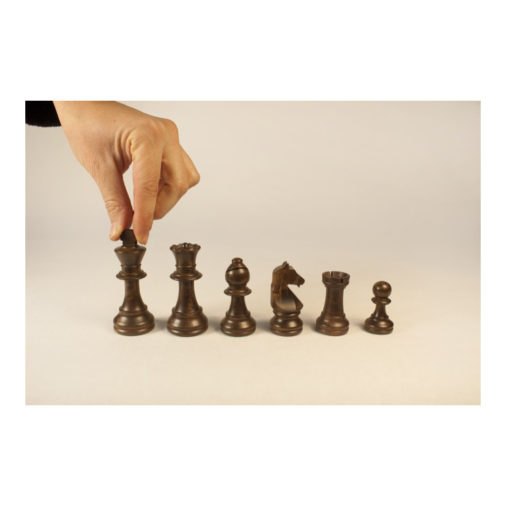 Piezas de ajedrez del modelo Staunton Europa. Un auténtico Staunton pero con un caballo muy estiloso. El color nogal y el proceso de pulido le aporta un tono a la madera muy especial.