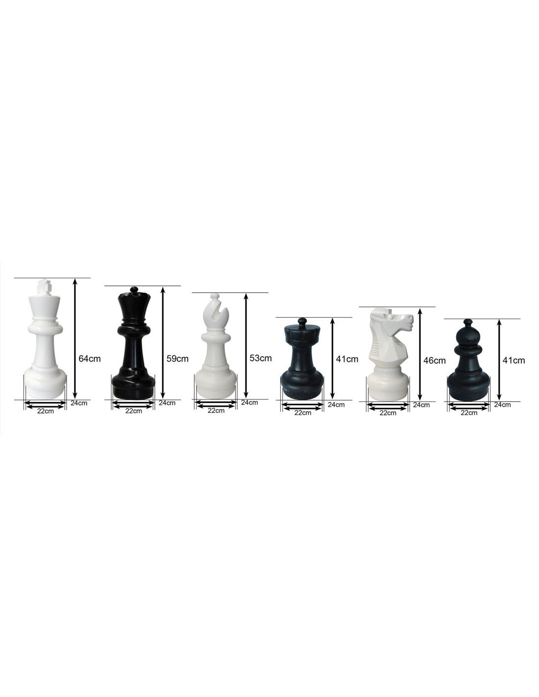 Este es nuestro producto estrella. Es impresionante y muy práctico. Las piezas adaptables a cualquier clima, pueden también rellenarse con arena. Tienen un acabado excelente. La mejor calidad al mejor precio garantizado. Un juego de ajedrez grande ideal para hoteles, ayuntamientos, escuelas, residencias y clubes. El tablero se vende aparte.