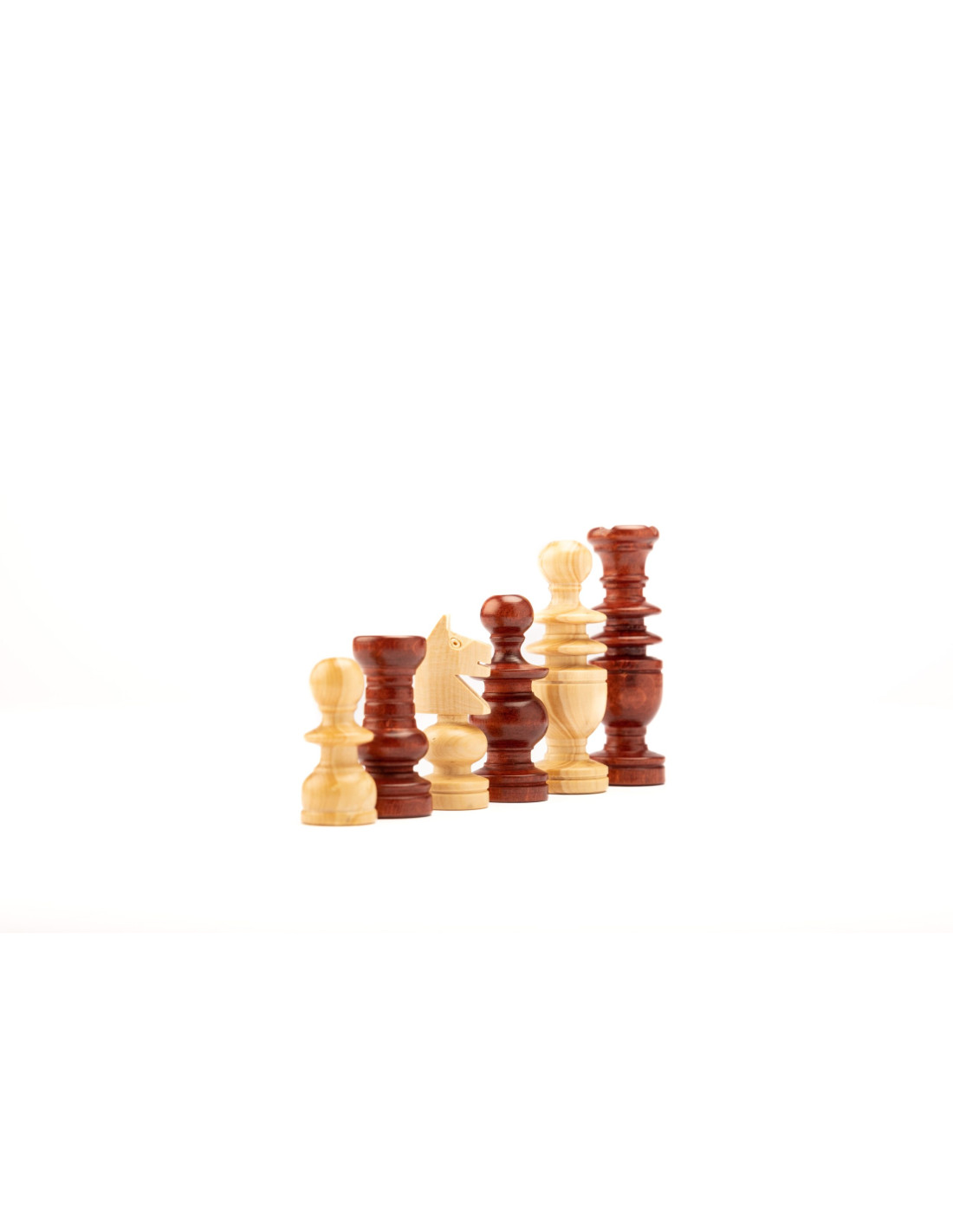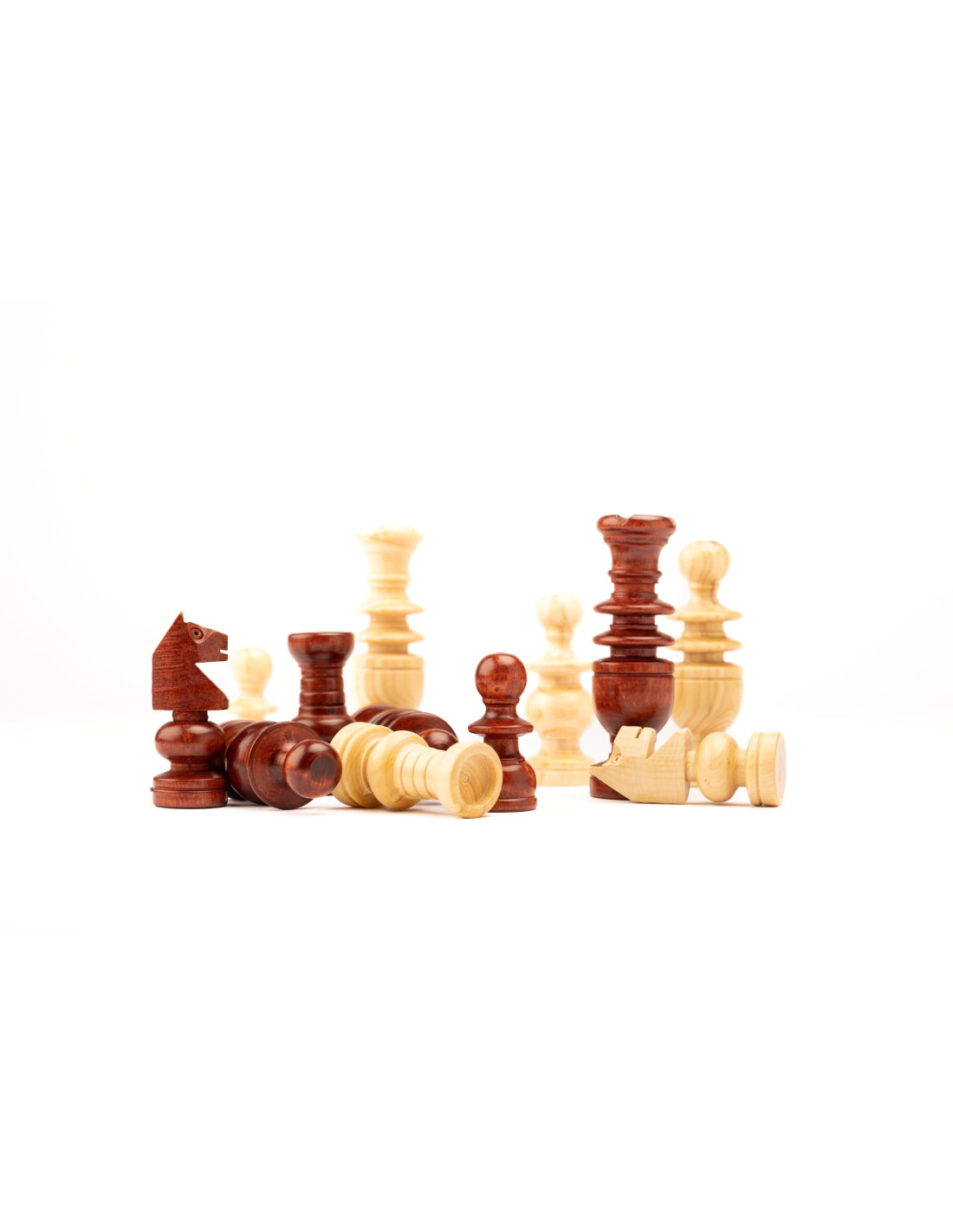 Piezas de ajedrez del modelo francés. Las piezas son de madera de boj, torneadas y terminadas a mano. Con un proceso de pulido natural que le da un aspecto y un tacto muy singular.