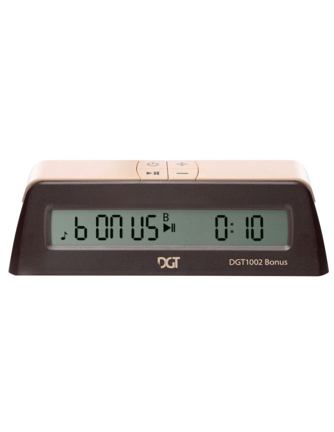 El DGT1002 es el reloj de ajedrez más simple con opciones de bonificación disponibles. Es extremadamente fácil de configurar y usar. ¡ Simplemente presione + o - para configurar el tiempo y el juego puede comenzar !
